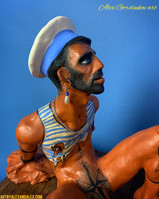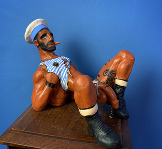 Four guys in the red grogged clay , painted with the underglaze paints, engobes. Covered with the natural oil to deepen this beautiful red colour of the clay.